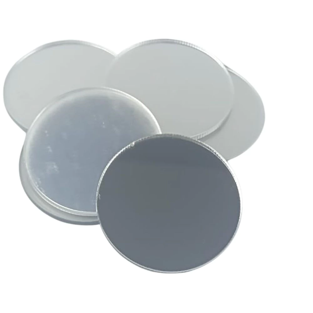 Pacotes com 05 mini espelhos no formato de circulo com 4cm de diametro, usados nos Moldes Mini Espelhos Circulos.