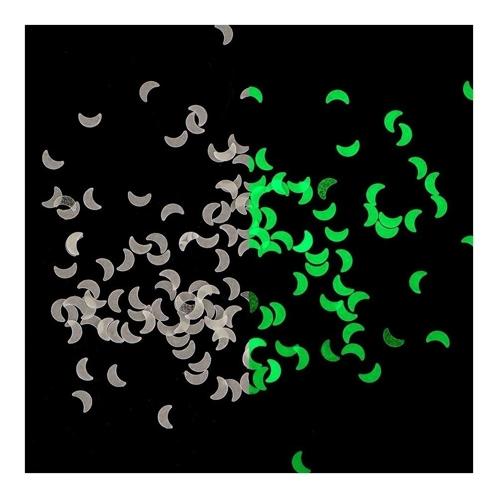 o UM PACOTE COM 10g DE ENCHIMENTO PARA RESINA EM FORMATO DE LUA FLUORESCENTE (BRILHA NO ESCURO)