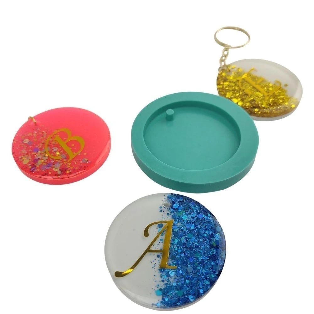 Molde para chaveiro em formato de círculo com 4,8cm de diâmetro. Nossos moldes possuem acabamento brilhante e são próprios para artesanato com resina... Pedido será enviado em até 3 dias úteis após a confirmação do pagamento do pedido. *Produto artesanal, pode conter pequenas marcações fora das cavidades que não irão interferir na sua peça, as cavidades são sempre inspecionadas para garantir o acabamento perfeito de sua peça. A cor do silicone pode ter pequenas variações, porém não interfere na sua peça.