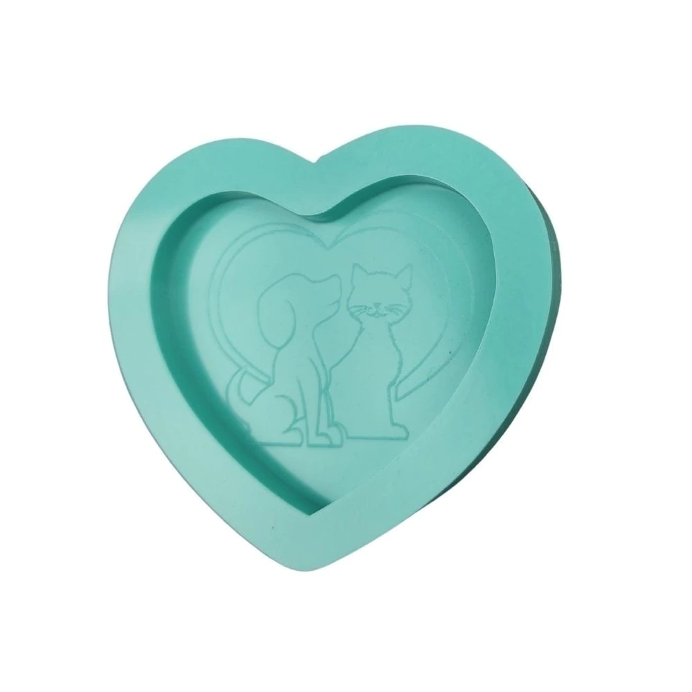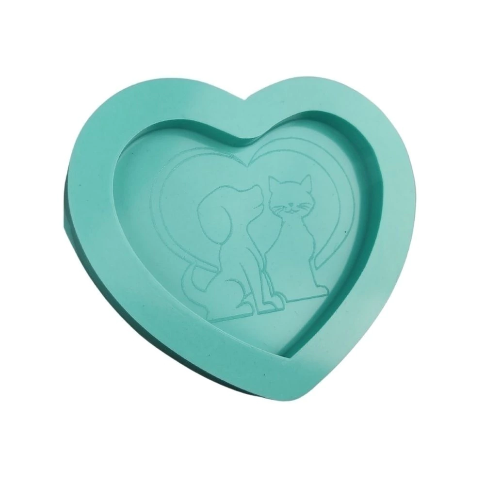 Molde Coração Cat e Dog com tamanho de 5L x 5,5A x 0,5P. Nossos moldes possuem acabamento brilhante e são próprios para artesanato com resina. Pedido será enviado em até 3 dias úteis após a confirmação do pagamento do pedido. *Produto artesanal, pode conter pequenas marcações fora das cavidades que não irão interferir na sua peça, as cavidades são sempre inspecionadas para garantir o acabamento perfeito de sua peça. A cor do Silicone pode ter pequenas variações, porém não interfere na sua peça.