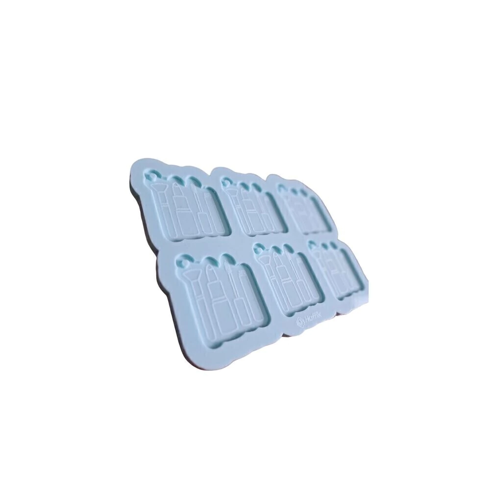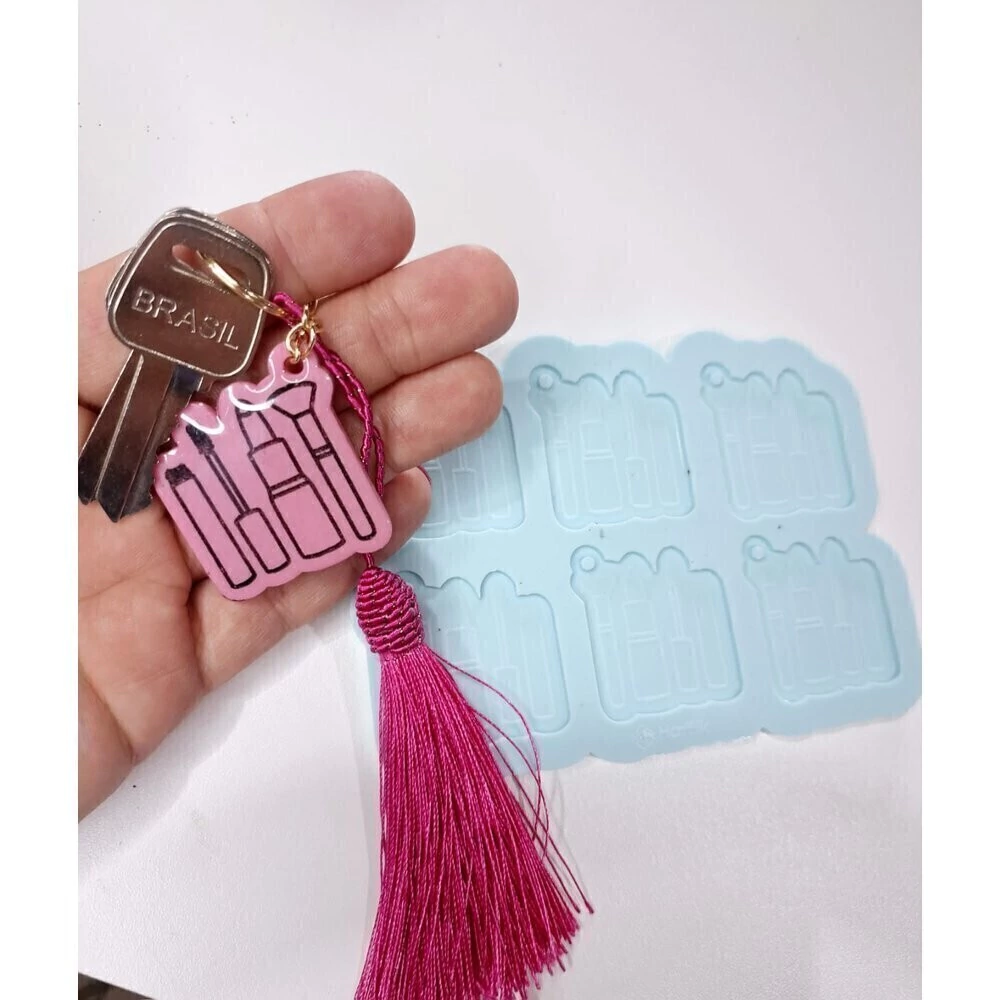 MOLDE DE SILICONE PARA RESINA CHAVEIRO MAQUIAGEM - 6 CAVIDADES