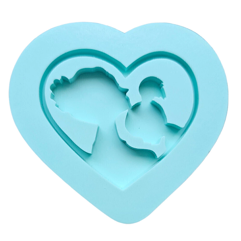 Molde para chaveiro no formato de coração com mãe e filha. Possui as medidas de 5,0L x 4,7A x 0,5P.