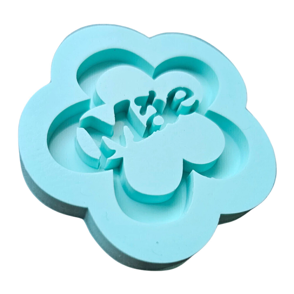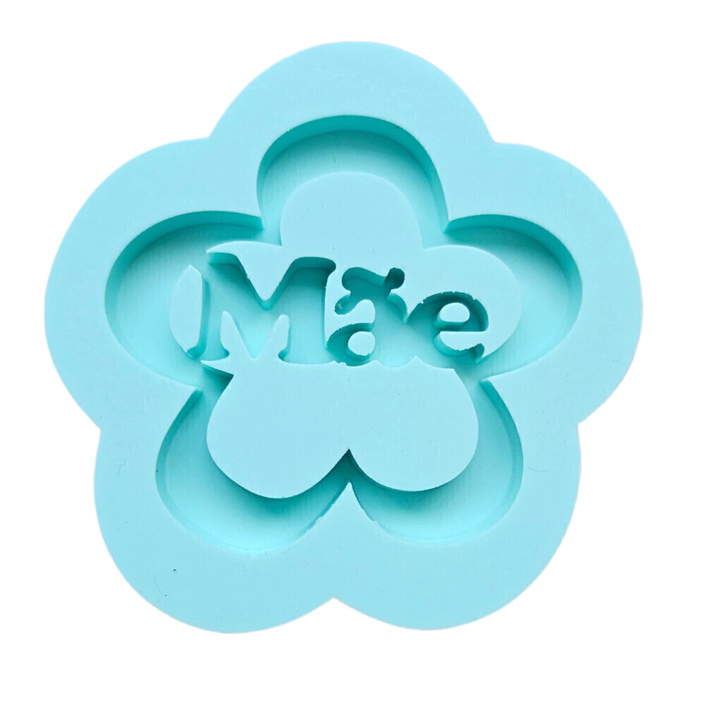 Molde para chaveiro no formato de flor com a palavra MÃE. Possui as medidas de 5,0L x 4,6A x 0,5P.