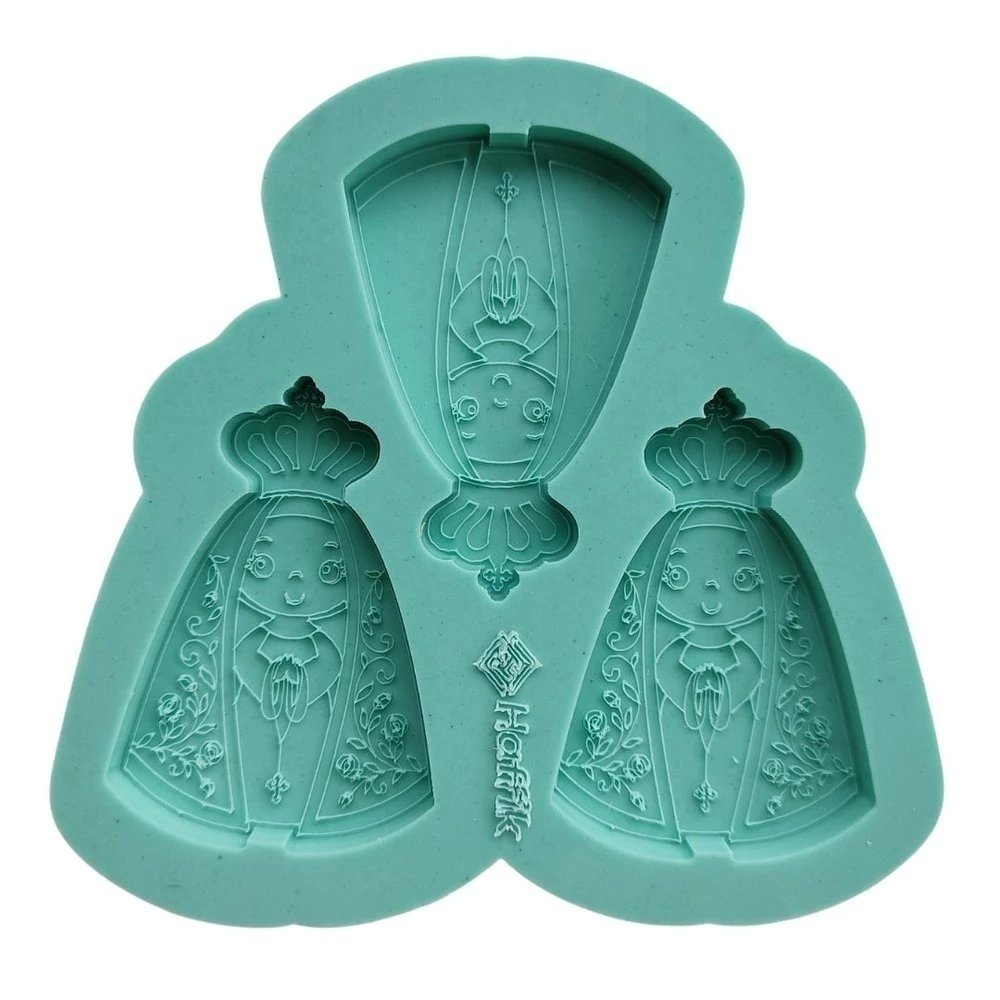 Molde Nossa Senhora Aparecida com, 2 Aparecidas com ramos em seu manto e 1 com manto liso, todas no tamanho 5L x ,9A x 0,5P. Nossos moldes possuem acabamento brilhante e são próprios para artesanato com resina. Pedido será enviado em até 3 dias úteis após a confirmação do pagamento do pedido. *Produto artesanal, pode conter pequenas marcações fora das cavidades que não irão interferir na sua peça, as cavidades são sempre inspecionadas para garantir o acabamento perfeito de sua peça. A cor do Silicone pode ter pequenas variações, porém não interfere na sua peça. Para fazer essa peça é utilizado a Resina de Baixa Viscosidade
