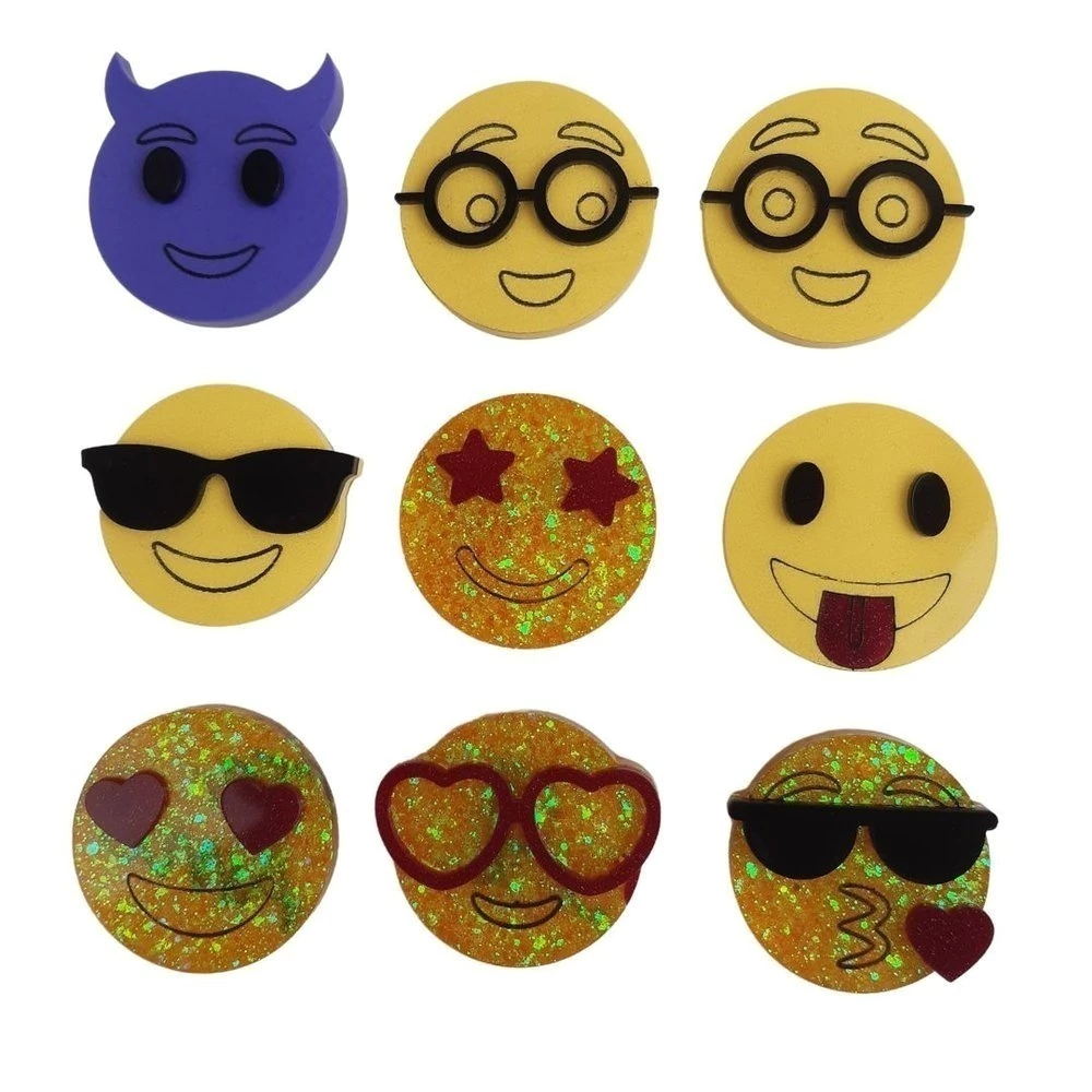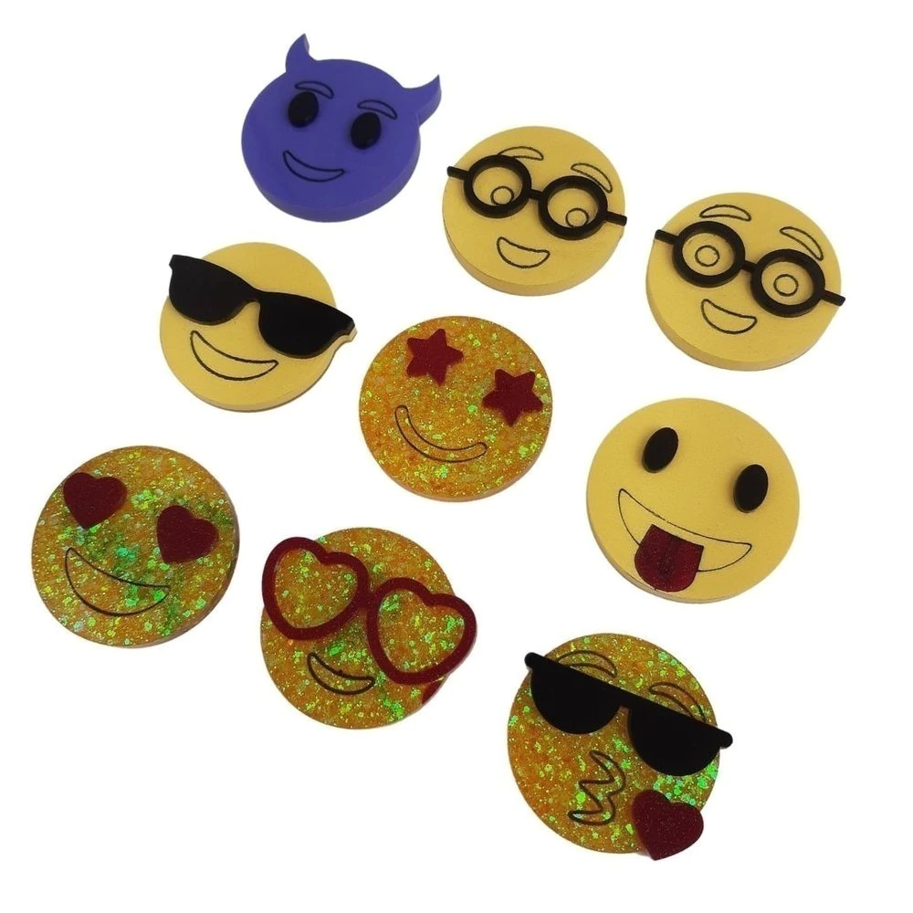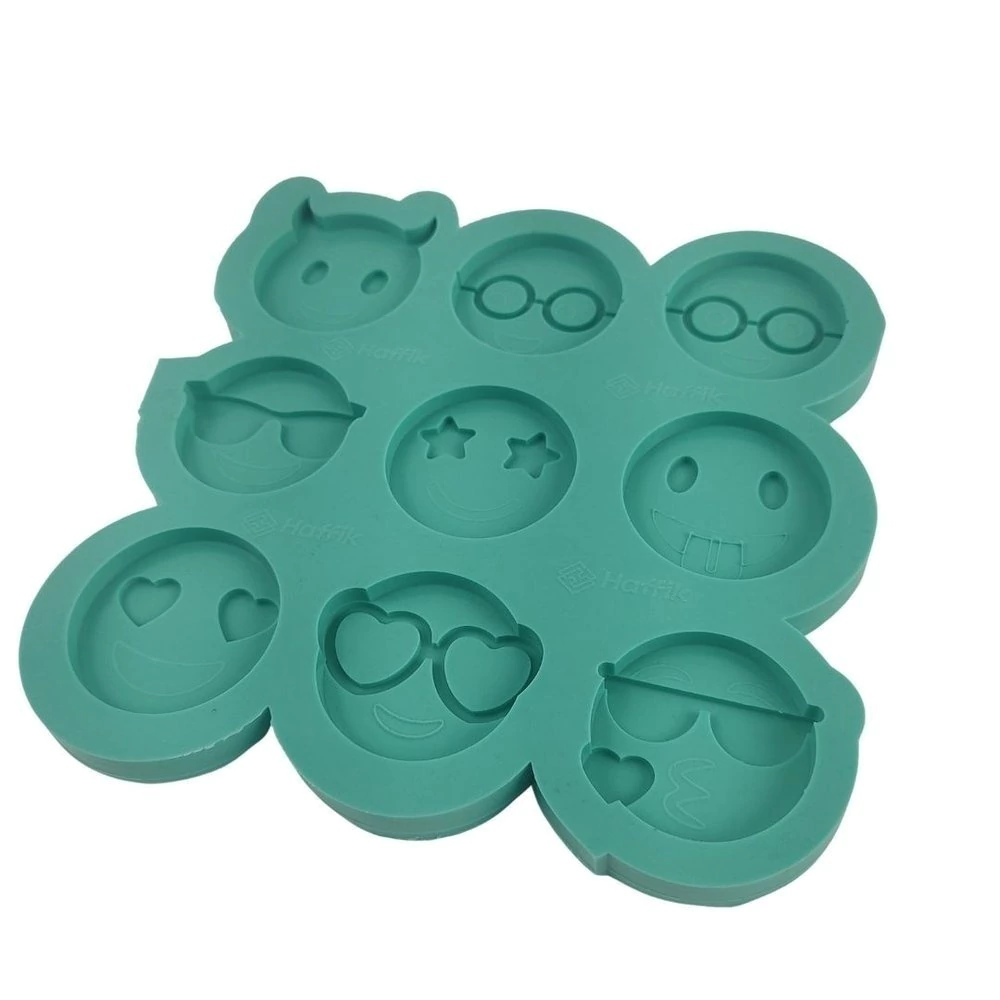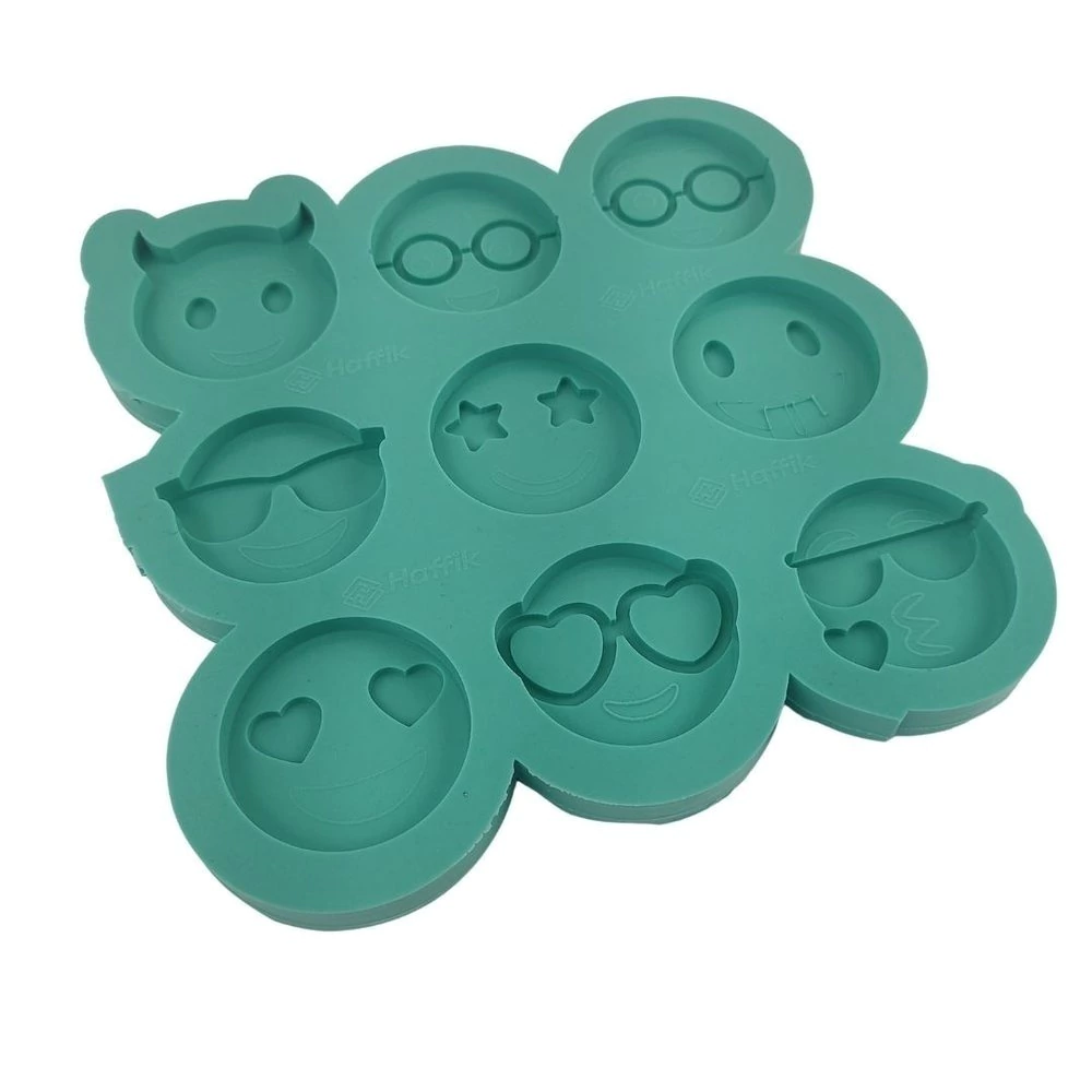 Molde Kit Emoji com 9 cavidades no tamanho de 4cm de diametro x 0,5P. Composto por 1 emoji capetinha, 1 nerd sorrindo, 1 emoji nerd , 1 emoji óculos de sol, 1 emoji maravilhoso, 1 emoji mostrando a lingua, 1 emoji apaixonado feliz, 1 emoji apaixonado , 1 emoji mandando beijo. Nossos moldes possuem acabamento brilhante e são próprios para artesanato com resina. Pedido será enviado em até 3 dias úteis após a confirmação do pagamento do pedido. *Produto artesanal, pode conter pequenas marcações fora das cavidades que não irão interferir na sua peça, as cavidades são sempre inspecionadas para garantir o acabamento perfeito de sua peça. A cor do Silicone pode ter pequenas variações, porém não interfere na sua peça.