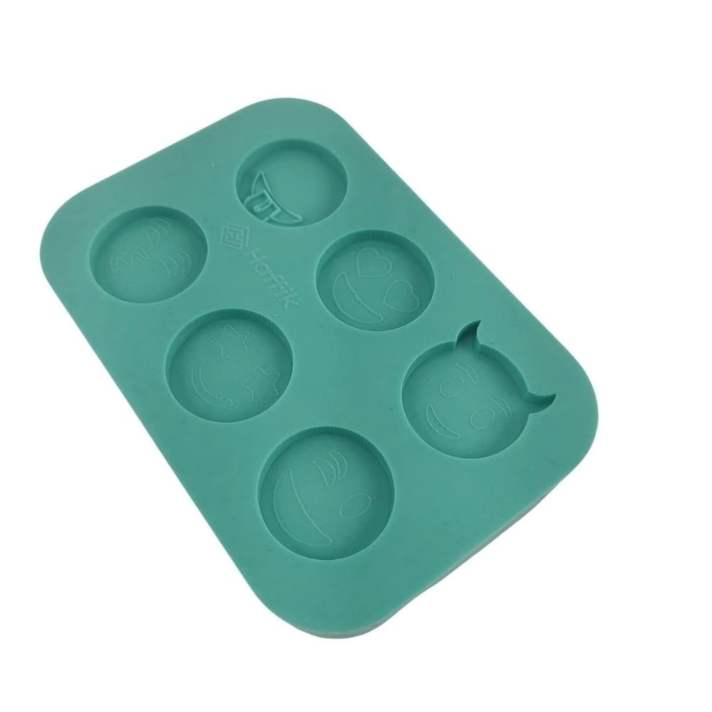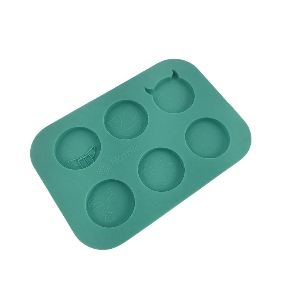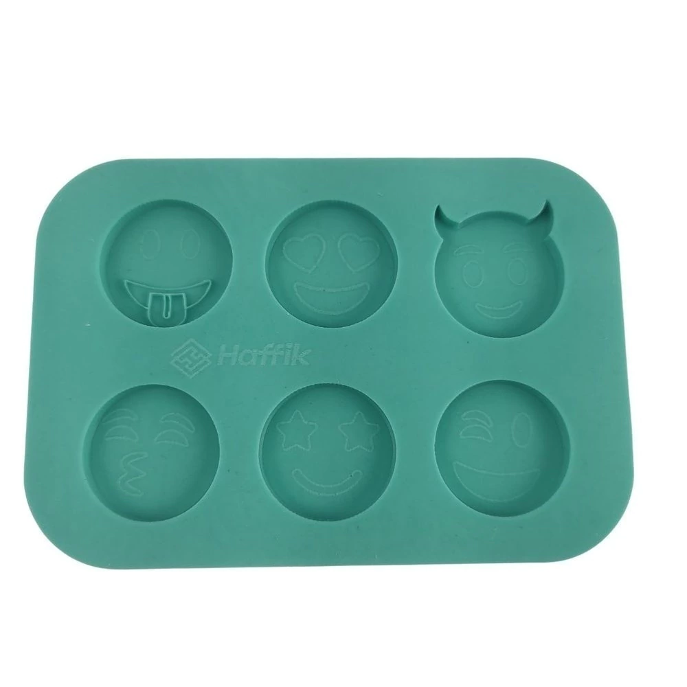 Molde Kit Mini Emoji com medidas internas de 2D x 0,3P, contendo 1 mini emoji mostrando a língua, 1 mini emoji apaixonado, 1 mini emoji capetinha, 1 mini emoji mandando beijo, 1 mini emoji maravilhoso, 1 mini emoji piscando. Nossos moldes possuem acabamento brilhante e são próprios para artesanato com resina. Pedido será enviado em até 3 dias úteis após a confirmação do pagamento do pedido. *Produto artesanal, pode conter pequenas marcações fora das cavidades que não irão interferir na sua peça, as cavidades são sempre inspecionadas para garantir o acabamento perfeito de sua peça. A cor do Silicone pode ter pequenas variações, porém não interfere na sua peça.