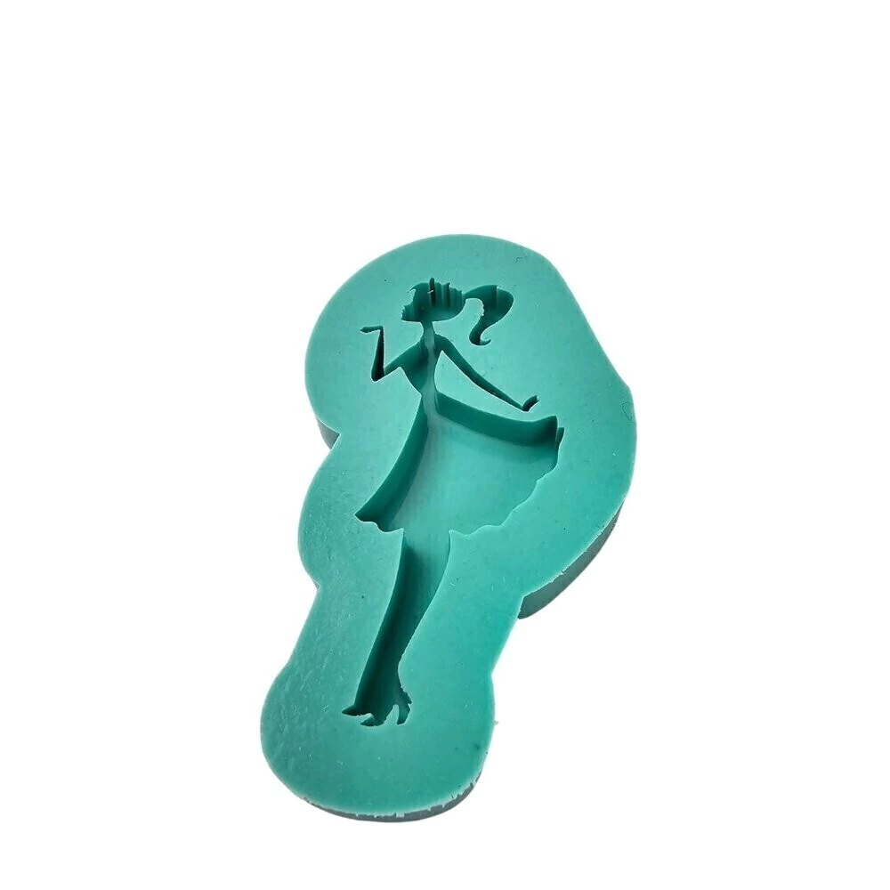 Molde para chaveiro no formato de boneca, nas medidas 6 x 3 x 0,5 cm.