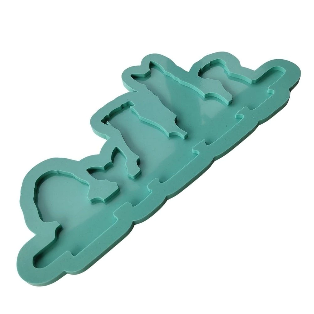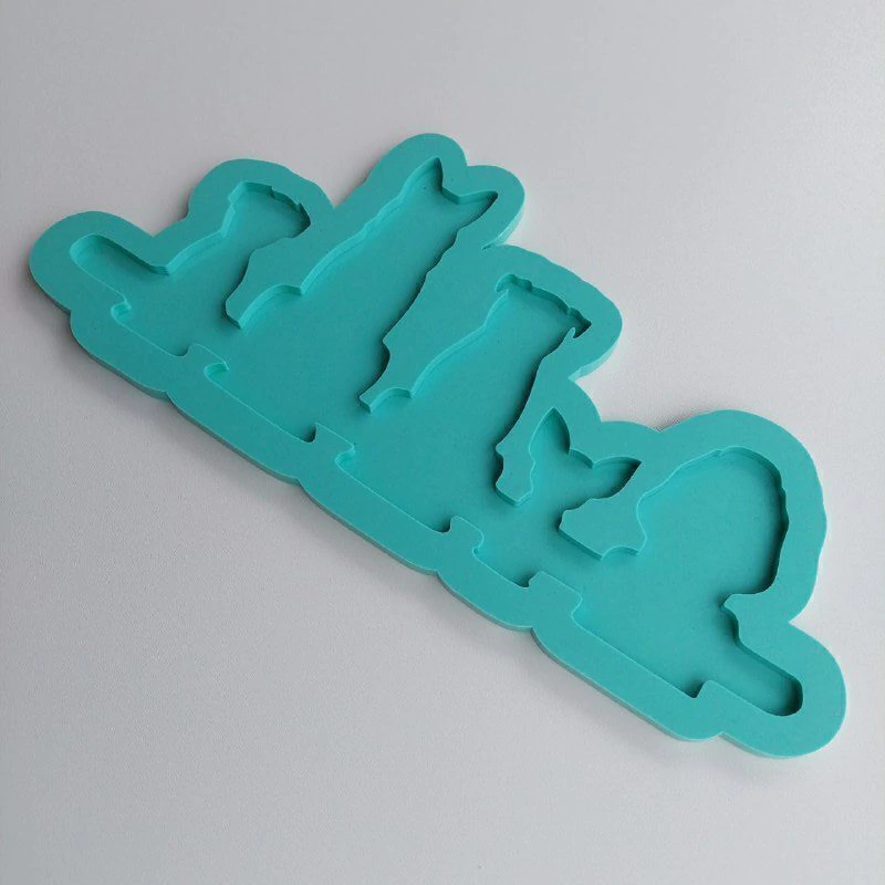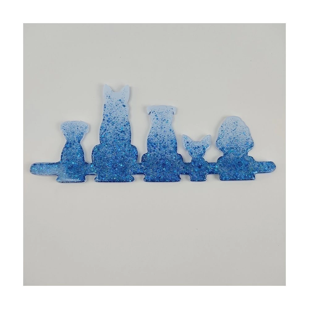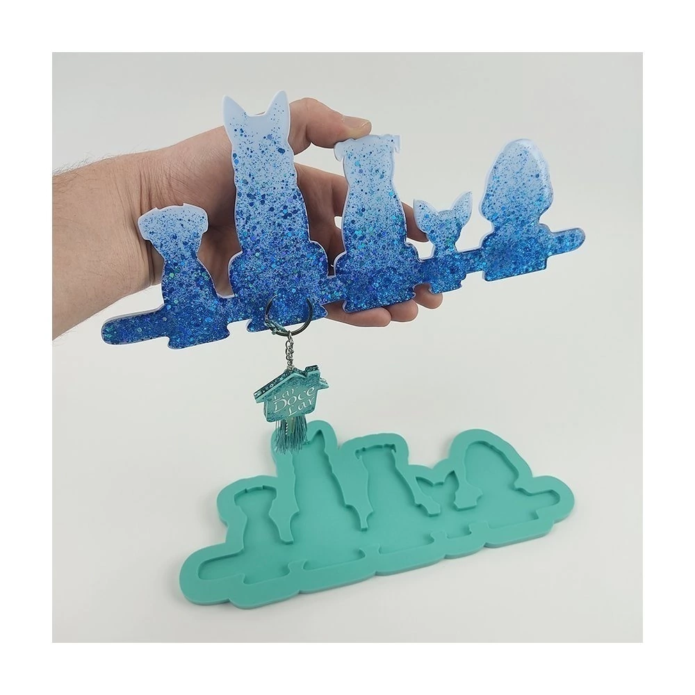 Porta chaves de Cachorrinhos no tamanho 29,6L x 12,5A x 0,5P. Nossos moldes possuem acabamento brilhante e são próprios para artesanato com resina. Pedido será enviado em até 3 dias úteis após a confirmação do pagamento do pedido. *Produto artesanal, pode conter pequenas marcações fora das cavidades que não irão interferir na sua peça, as cavidades são sempre inspecionadas para garantir o acabamento perfeito de sua peça. A cor do Silicone pode ter pequenas variações, porém não interfere na sua peça. Para cada peça você vai usar em média 107g de resina, essa quantidade pode várias de acordo com a quantidade de gliter ou enchimento que você colocar dentro da resina.