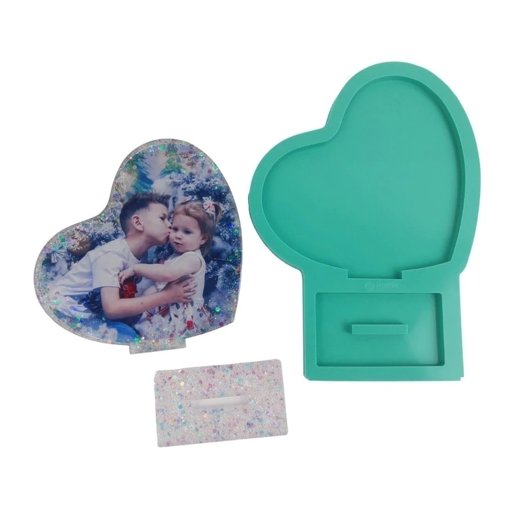 Molde Porta Retrato em formato de Coração no tamanho 11L x 11,5A x 0,5P, e base com tamanho de 7L x 4A x 0,5P. Nossos moldes possuem acabamento brilhante e são próprios para artesanato com resina. Pedido será enviado em até 3 dias úteis após a confirmação do pagamento do pedido. *Produto artesanal, pode conter pequenas marcações fora das cavidades que não irão interferir na sua peça, as cavidades são sempre inspecionadas para garantir o acabamento perfeito de sua peça. A cor do Silicone pode ter pequenas variações, porém não interfere na sua peça. Para cada peça você vai usar em média 26g de resina, essa quantidade pode várias de acordo com a quantidade de gliter ou enchimento que você colocar dentro da resina.