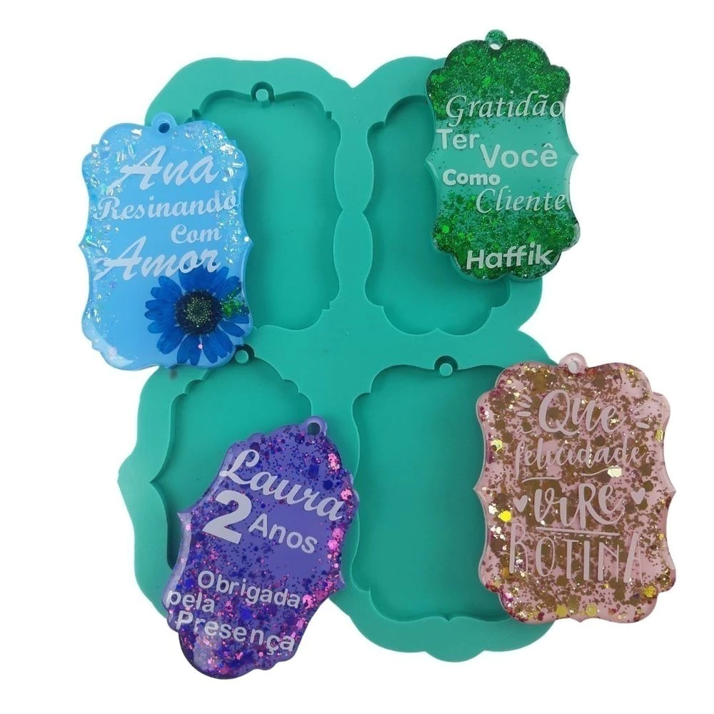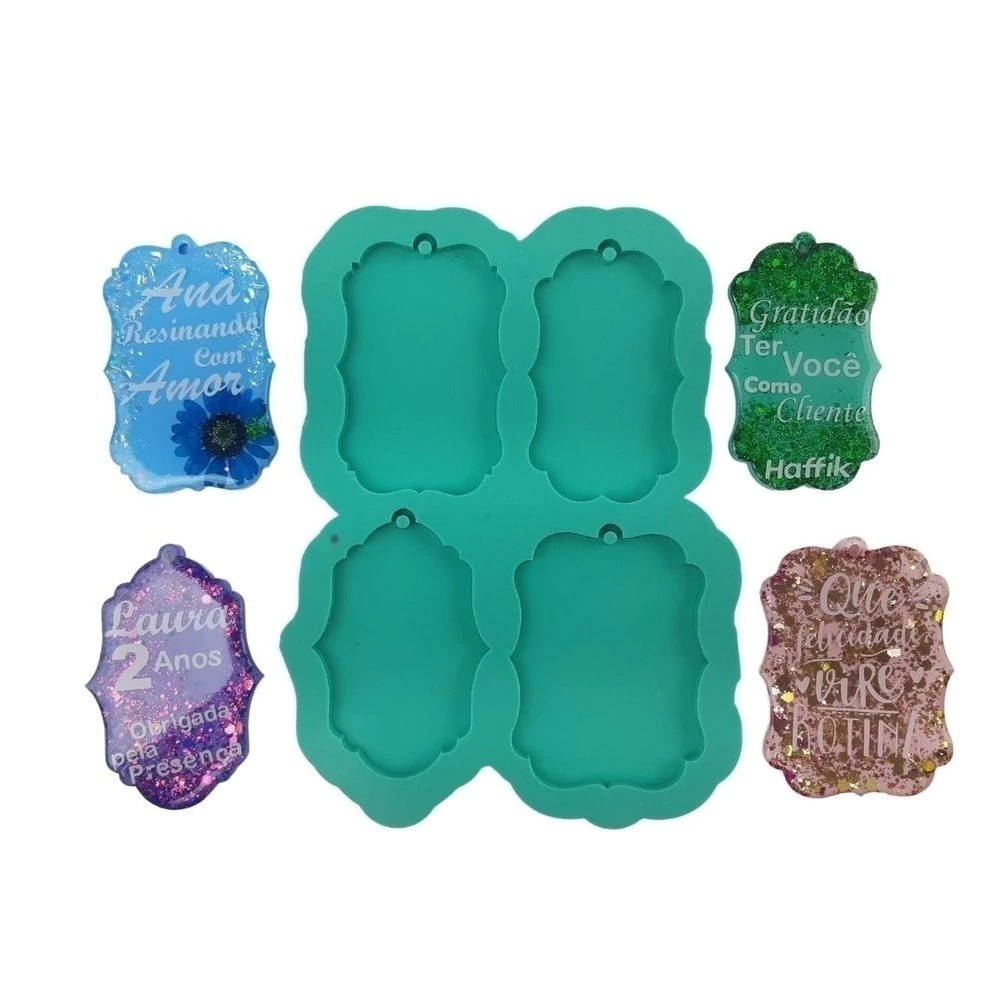 o UM MOLDE TAGS PARA CHAVEIRO COM 4 CAVIDADES